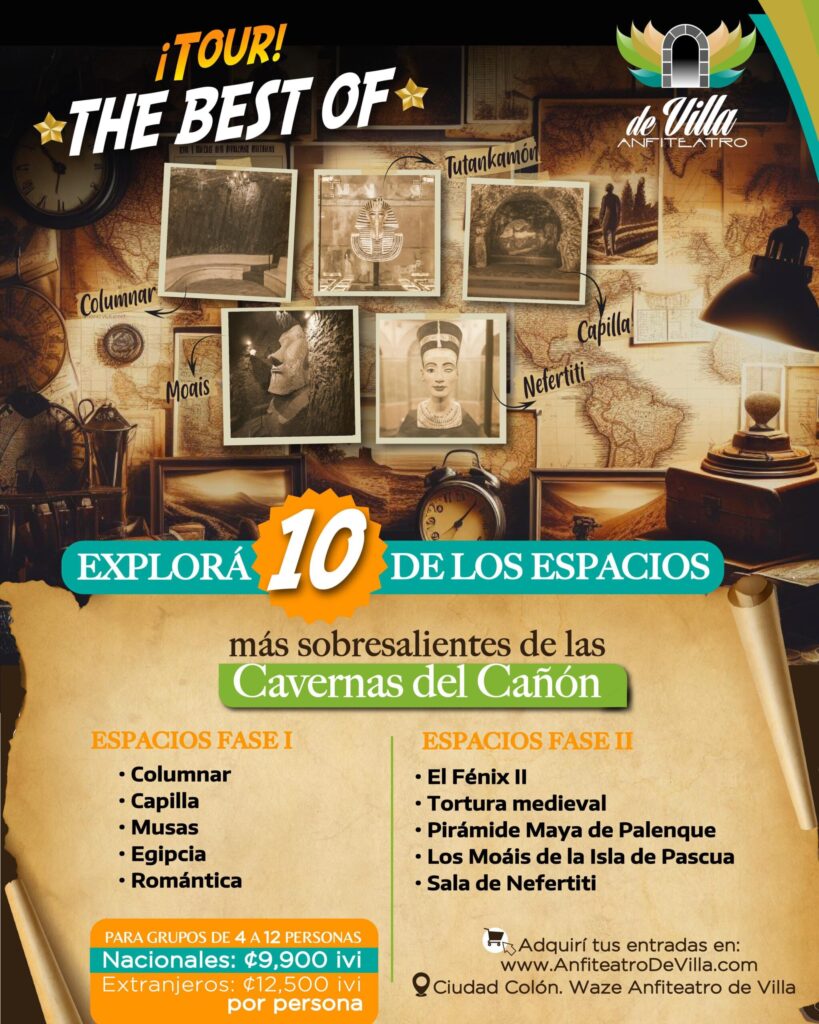 Al realizar tu evento en el Anfiteatro de Villa, tendrás de cortesía realizar el tour de las Cavernas del Cañón a elegir entre Fase 1 o Fase 2.